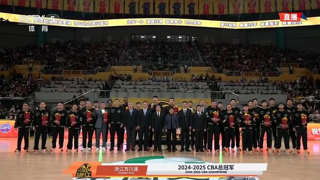赛前,广厦举办上赛季的总冠军颁奖仪式,广厦将帅依次领取属于他们的总冠军戒指,胡金秋还代表因为禁赛无法登场的楼明领取总冠军戒指。