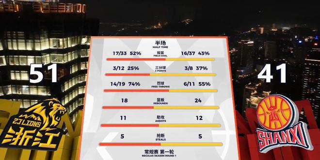 半场战罢,广厦51-41领先山西,广厦四大外援合砍37分,但之所以没能进一步扩大领先,主要还是孙铭徽第二节后半段又有些浪投了。